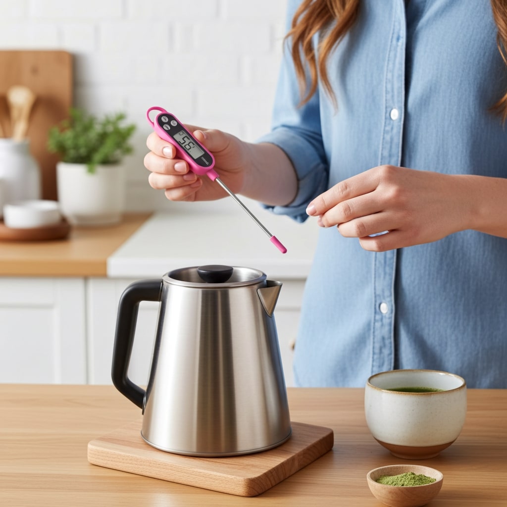 Przygotowanie idealnej filiżanki Matchy to sztuka. Aby wydobyć z herbaty pełnię smaku i aromatu, temperatura wody ma ogromne znaczenie. Nasz cyfrowy termometr kuchenny z sondą to proste, estetyczne i niezawodne narzędzie, które pomoże Ci za każdym razem zaparzyć Matchę dokładnie tak, jak trzeba.